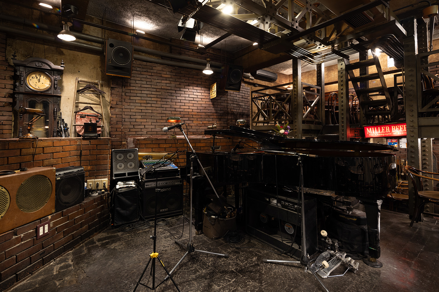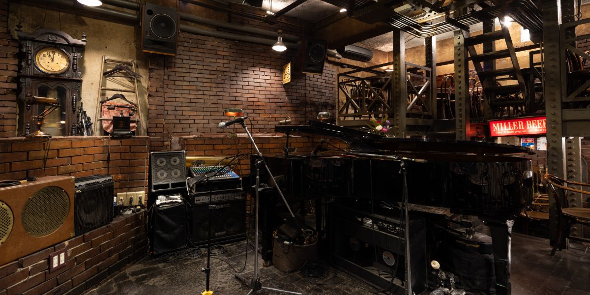 階段を降りると、非日常が始まる。日替わりのアーティストが演奏するジャズを聴きながら、リーズナブルな料理に舌鼓。1チャージで2セットまで楽しめ、往年のファンから初心者まで幅広い層の人が気軽に足を運んでいる。