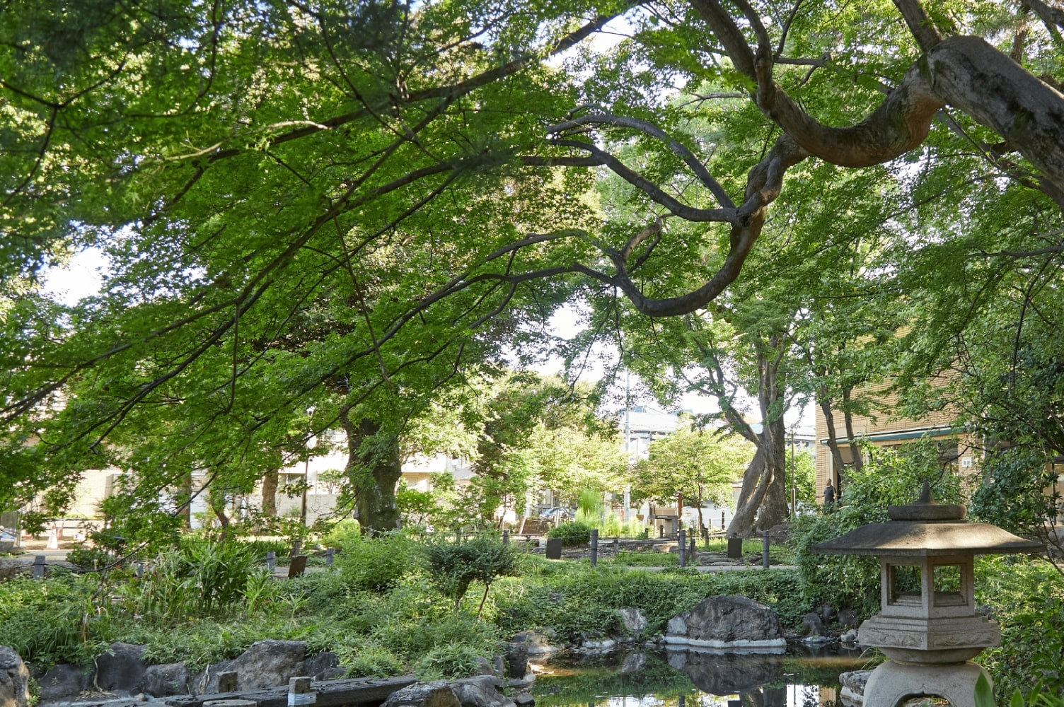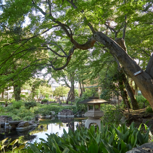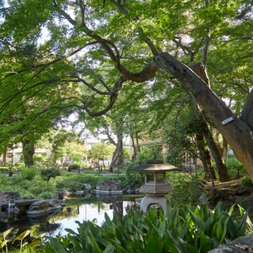 瑞々しい緑の潤いに心やすらぐ庭園で、かつての街の息吹を感じる穏やかな時を。