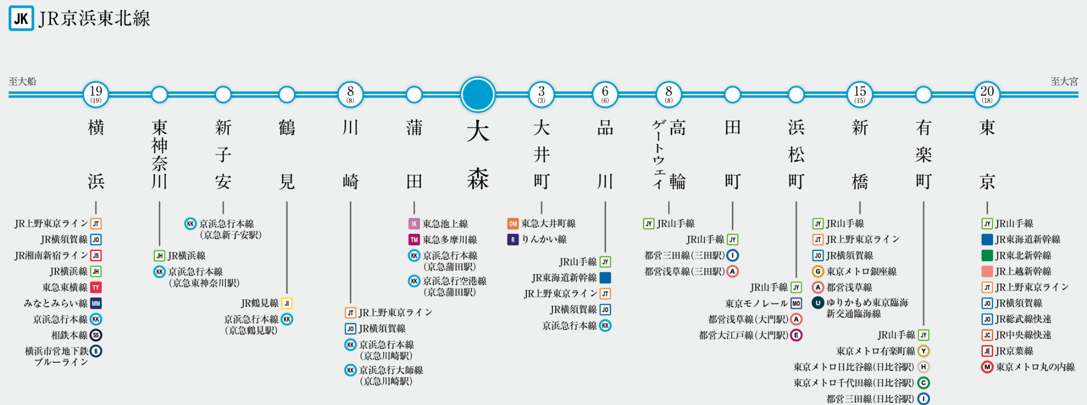 「東京」駅や「品川」駅、「大宮」駅、「横浜」駅などのターミナル駅へ直通しているため、通勤・通学に便利。