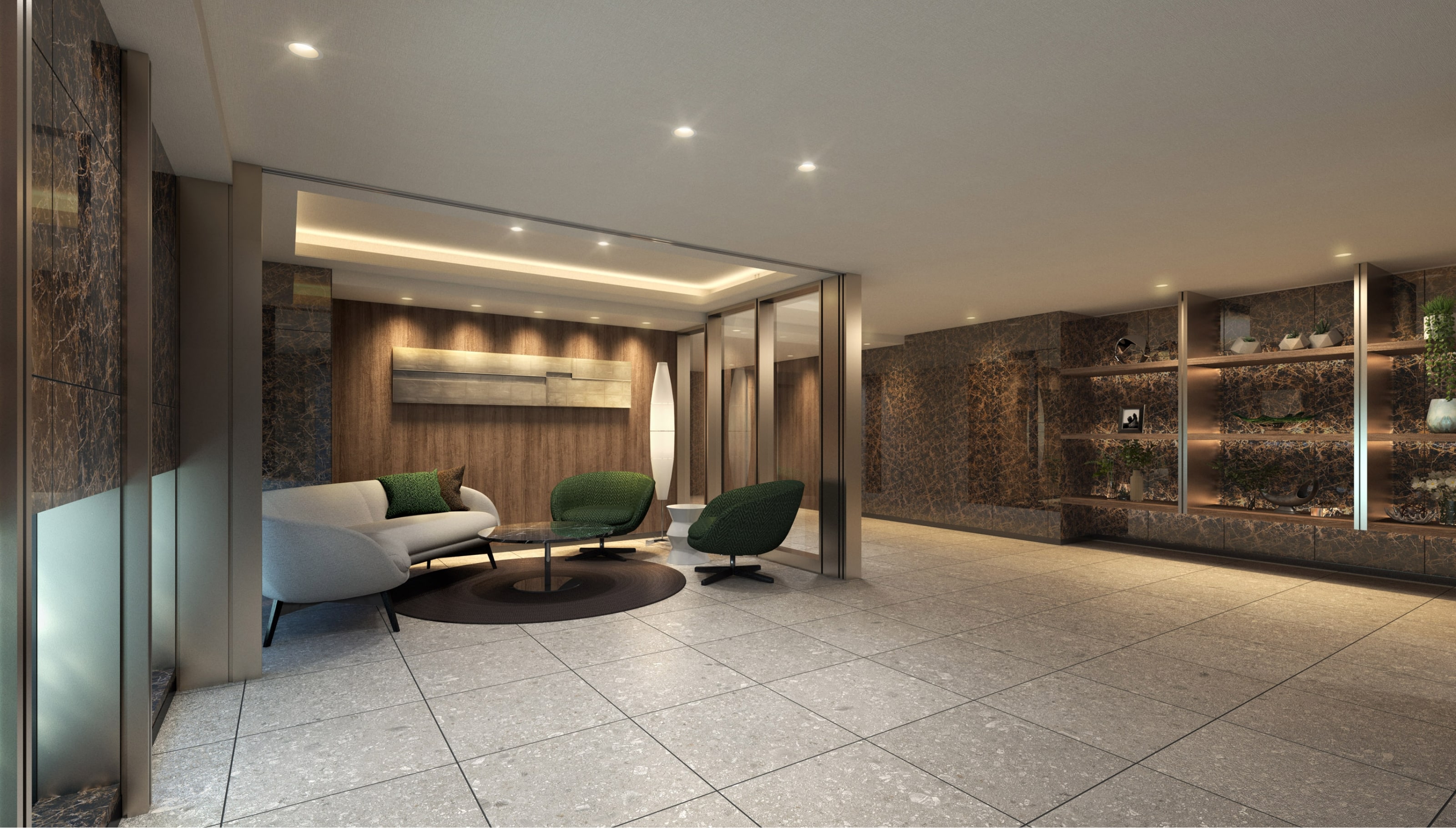 マテリアルの色調・風合いの切り替えや、タイルの貼り方にもこだわることで、レジデンスの上質さや独自性を醸し出していきます。