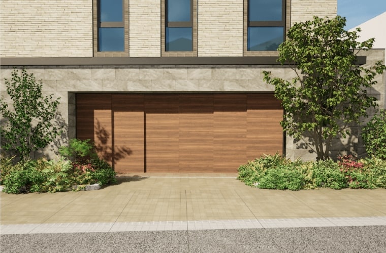 外観完成予想CG 車庫入口は内部の見えないオートドア敷地駐車場の車路の入口には内部の見えないオートドアを設置。リモコン操作で簡単に開閉できます。